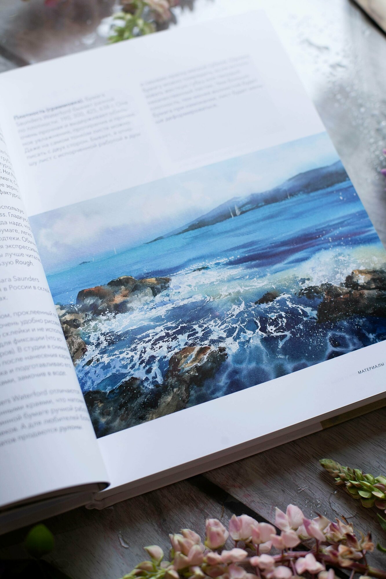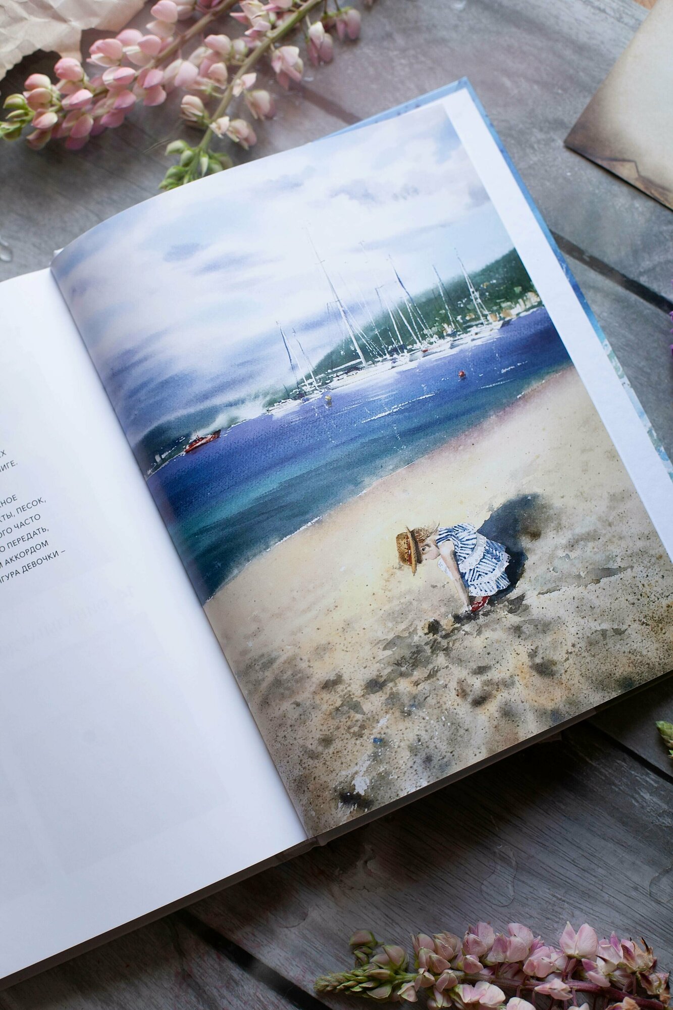 В книге 23 пошаговых урока, где Евгения делится своими авторскими техниками и учит: рисовать блики, пену, волны, отражение, создавать эффект глубины.