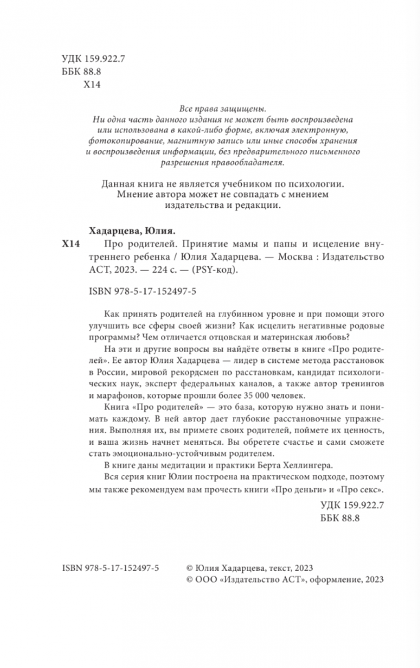 Про родителей. Принятие мамы и папы и исцеление внутреннего ребенка (Юлия Хадарцева); Издательство АСТ, 2023