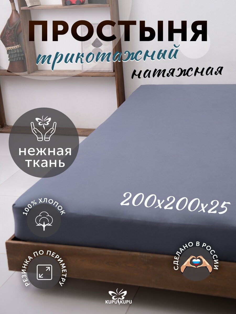 Простыня KUPU-KUPU натяжная изготовлена из натурального и экологически чистого 100% хлопка трикотаж. Приятная, мягкая на ощупь гигроскопичная ткань создает оптимальные условия для естественной терморегуляции и комфортного отдыха: пропускает воздух и легко впитывает влагу. Простыня имеет резинку по периметру, рекомендована для матрасов высотой до 25 см. Рекомендуем при первом использовании максимально натянуть углы простыни под матрас, она должна плотно его облегать — в этом ее преимущество. Простыня на резинке марки KUPU-KUPU имеет массу достоинств: не требует глажки, при правильном уходе ткань не теряет насыщенности цвета после множества стирок и не образует катышков. Широкая цветовая гамма позволяет скомбинировать комплект постельного белья, дополнительно заказав на ваш вкус любые цвета наволочек и пододеяльников марки KUPU-KUPU. Цвет на мониторе может не совсем точно передавать цвет в оригинале.