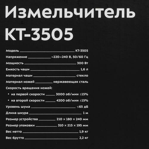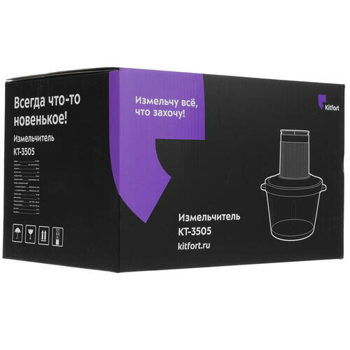 Измельчитель Kitfort KT-3505 – устройство для быстрого измельчения мяса, твёрдого сыра, овощей, трав, чеснока, ягод и многих других продуктов. Простой кухонный нож для ручной нарезки и измельчения не выдерживает никакой конкуренции с этим устройством! Управление прибором осуществляется нажатием кнопки первой или второй скорости, расположенной на верхней части моторного блока. Кнопка первой скорости подходит для измельчения более мягких продуктов, кнопка второй скорости – для более твёрдых.