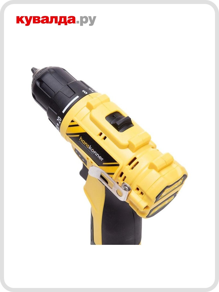 Аккумуляторный шуруповерт Hanskonner HCD1230R с бесщеточным двигателем один из самых мощных и компактных в своем классе.Индикатор заряда аккумулятора позволит постоянно контролировать уровень заряда или не начать работу с разряженным аккумулятором.Одномуфтовый быстрозажимной патрон позволяет менять оснастку одной рукой.20 ступеней регулировки усилия затяжки позволят работать с самыми мягкими и деликатными материалами.Для комфортной работы, а также для работы в слабоосвешщенных местах на шуруповерте сделана яркая светодиодная подсветка.Специальная скоба с возможностью установки как справа, так и слева позволит повесить шуруповерт на поясе, чтобы он постоянно находился "под рукой".Петля для кисти защитит шуруповерт от случайных падений.Шуруповерт Hanskonner HCD1230R поставляется с двумя сменными аккумуляторами в пластиковом кейсе.