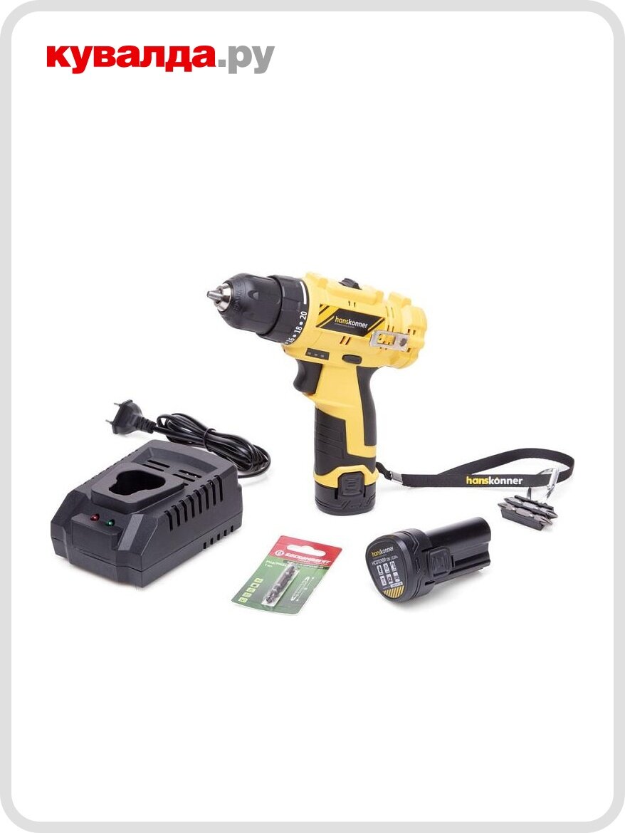 Сервис сравнения цен СкидкаГИД предлагает сравнить цены на товар «дрель-шуруповерт HANSKONNER HCD1230R 12В Li-Ion 2Ач 2 АКБ»