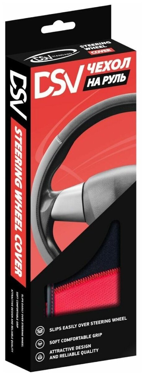 оплетка руля DSV M 37-39см неопрен черная с красным (R99306B)