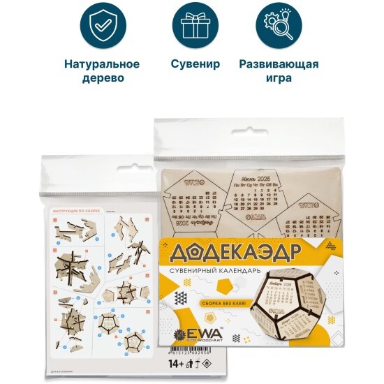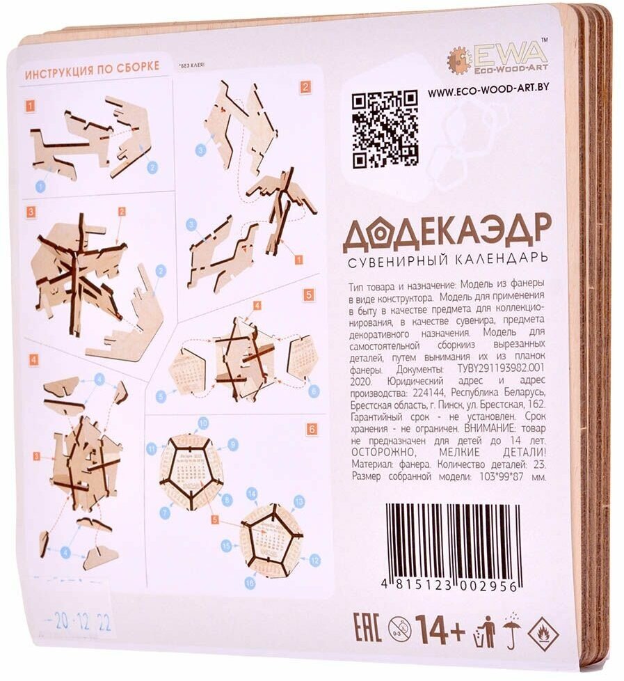 3D конструктор из дерева "Календарь Додекаэдр" Eco Wood Art (ECalend)