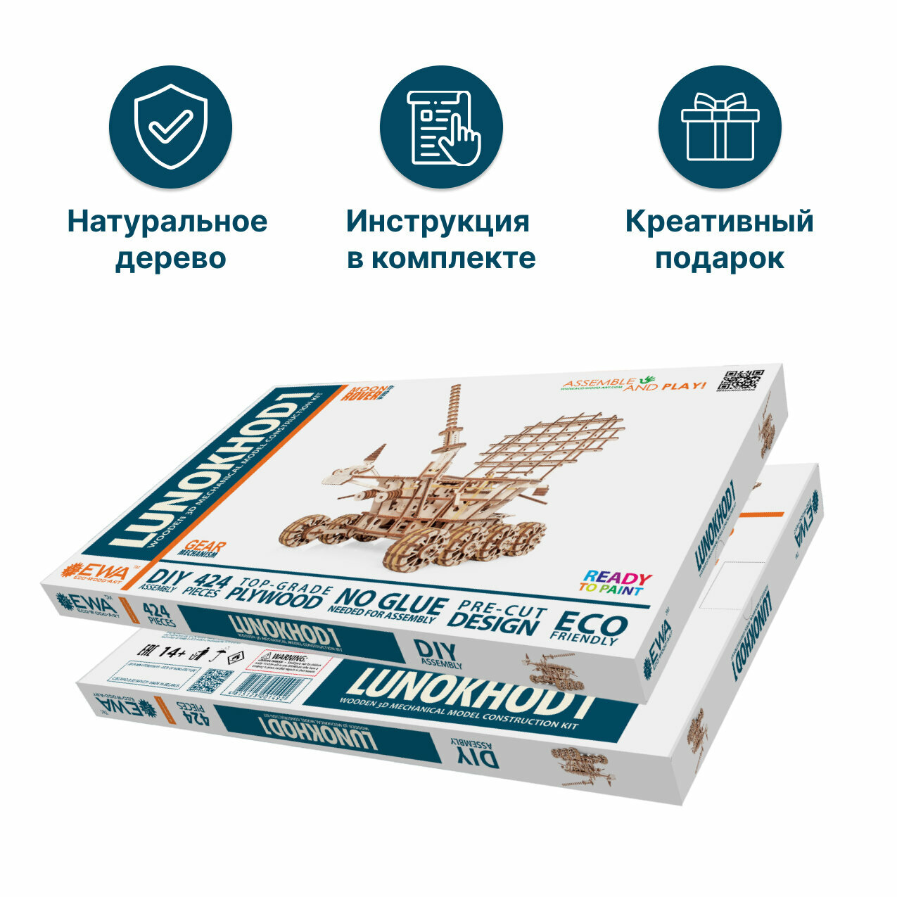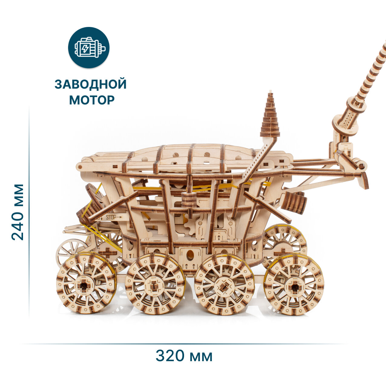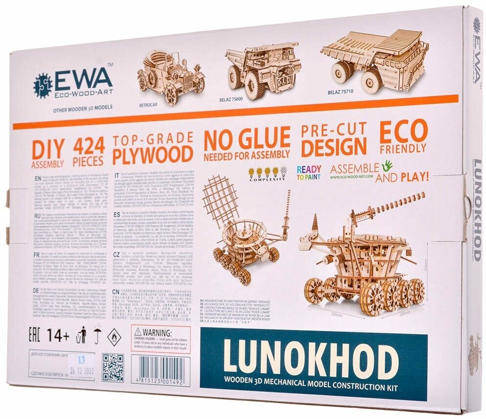 Луноход от EWA - сборная механическая модель, деревянный конструктор, 3D пазл