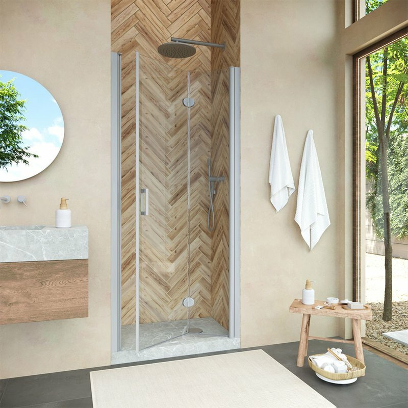 Душевая дверь в нишу Vegas Glass профиль матовый хром важнейший предмет интерьера ванной, без которого невозможно обойтись. Дополнительно душевая дверь в нишу зрительно расширяет пространство, что особенно актуально для небольших ванных комнат.