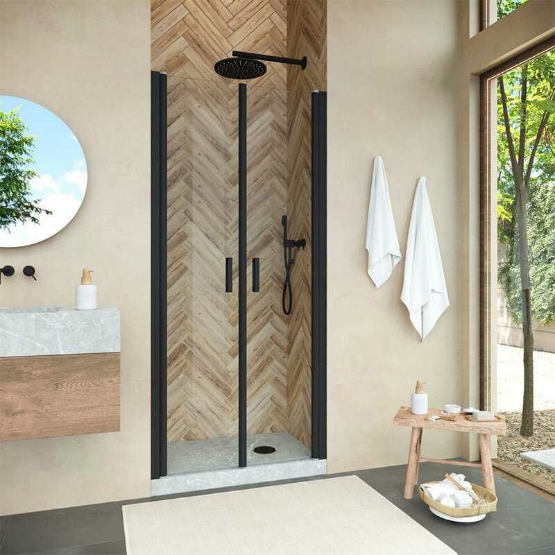 Душевая дверь в нишу Vegas Glass E2P Novo 80 02М 01 профиль черный матовый важнейший предмет интерьера ванной, без которого невозможно обойтись. Установка душевой двери в нишу поможет просто и быстро обустроить функциональную зону в санузле, что значительно снизит стоимость работ.