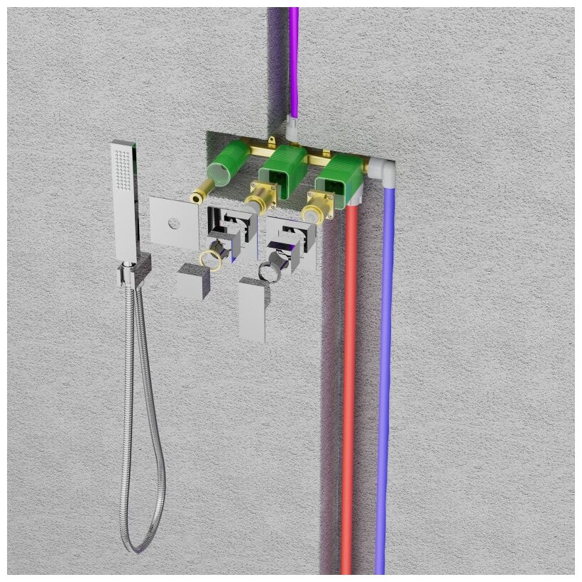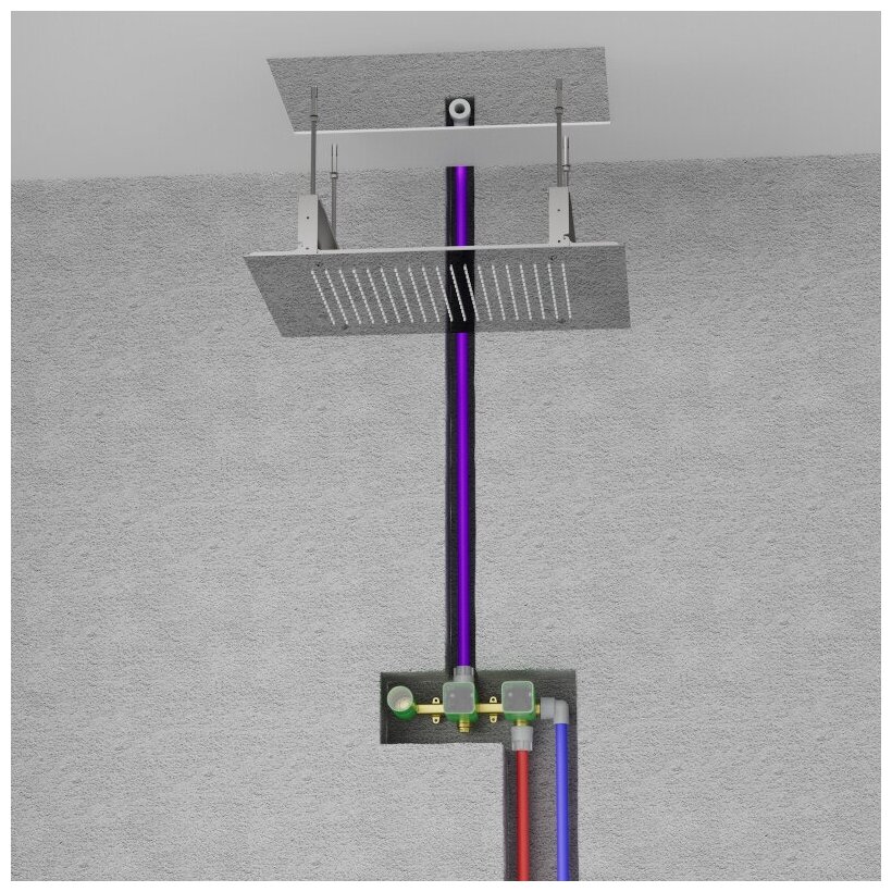 Инструкция *Уже в комплекте: смеситель, внутренняя часть Встраиваемая душевая система Selene 2129, относится к премиальному сегменту, предназначена для монтажа в полой или твердой стене. Встроенный потолочный душ большого размера создает имитацию проливного дождя, вода обливает человека целиком. Регулируя напор воды можно получить массажное воздействие, что очень полезно для здоровья. Основные преимущества встроенной системы: элегантный внешний вид, все коммуникации и крепления спрятаны в стену и потолок, снаружи видны только декоративные элементы. Установить встроенную систему можно в любом месте. Использовать такой смеситель очень удобно, регулировка напора и температуры воды осуществляется одним рычагом. Переключение режимов "тропический душ" и "ручной душ" осуществляется поворотом ручки дивертора. Сложностей монтажа не возникает при установке элементов душевой системы опытным сантехником. Внимательно изучите инструкцию по монтажу и эксплуатации. Встраиваемая система Внутренняя монтажная часть в комплекте Со смесителем Рычажное управление Латунь 1 режим струи Имеет встроенный девиатор, автоматически переключающий поток с душа на излив при закрытии воды Длина шланга: 150 см Металлический шланг Размер верхнего душа: 60 см Размер лейки: 10 см Керамический картридж Глянцевый Стандарт подводки: 1/2" Специальное покрытие внутри устройства предотвращает образование извести и скопление загрязнений С функцией экономии расхода Оснащение: Душевой шланг Душевая лейка Переключатель потоков Держатель для душа Гарантия: 5 лет Финляндия Комплектация: Встраиваемый блок управления душевой системой - 1 шт. Картридж смесителя - 1 шт. Дивертор -1 шт. Декоративная крышка картриджа - 1 шт. Гайка - 1 шт. Декоративные накладки - 3 шт. Декоративные гильзы - 2 шт. Ручка управления смесителем - 1 шт. Ручка дивертора - 1 шт. Соединительная трубка - 1 шт. Держатель ручной лейки с подключением шланга для душа (латунный) - 1 шт. Ручная лейка (латунная) - 1 шт. Шланг душа 1,5 м - 1 шт. Корпус потолочного душа - 1 шт. Декоративная душевая панель 600*430 мм (латунная) - 1 шт. Крепежные винты с гайками (комплект) - 4 шт. Крепежные винты душевой панели (комплект) - 4 шт. Подвесные кронштейны (комплект) - 2 шт. Подводка - 1 шт. Инструкция - 1 шт.