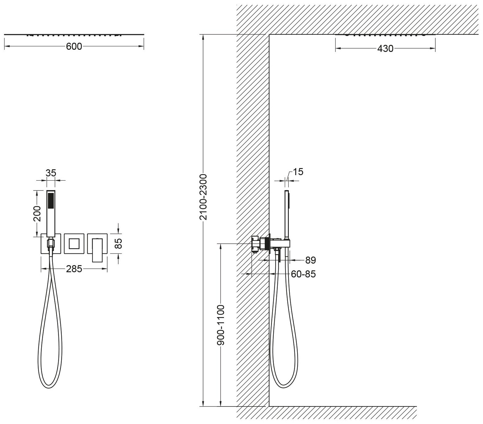 | Состав комплекта | шланговое подключение,верхний душ,смеситель для душа |