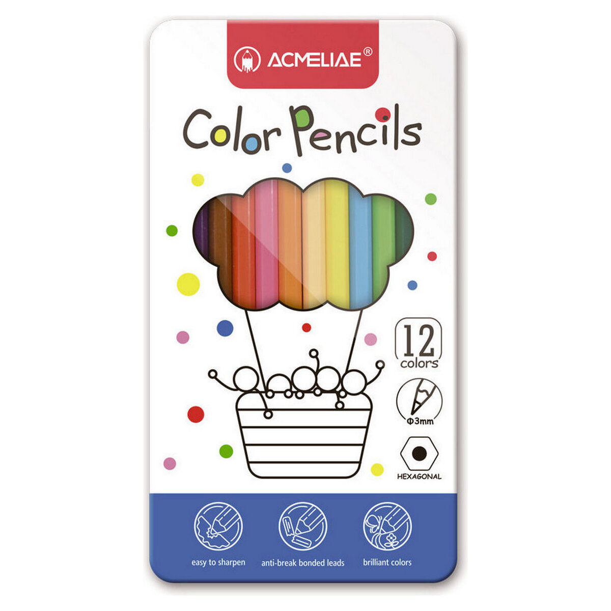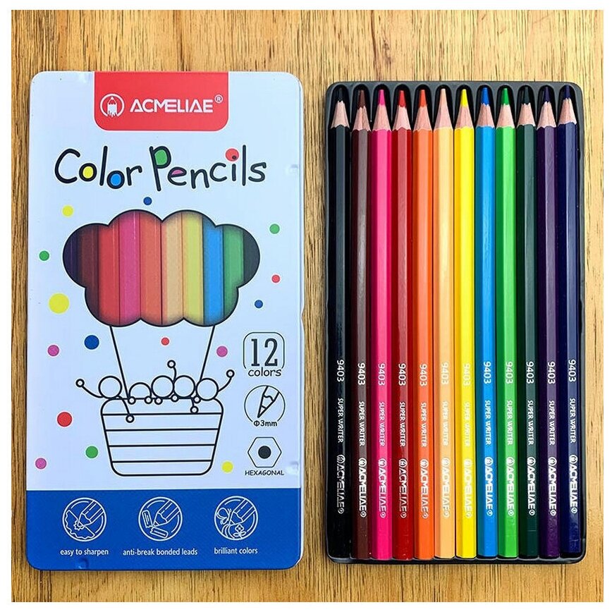 Набор карандашей цветных Acmeliae 12 цв в металлическом футляре (9800-12)