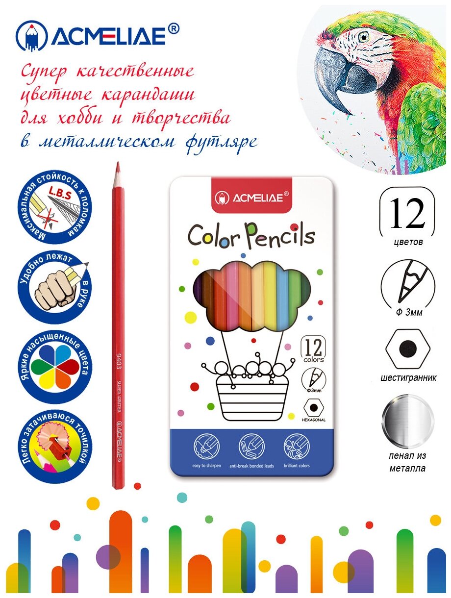 Сервис сравнения цен СкидкаГИД предлагает сравнить цены на товар «Набор карандашей цветных Acmeliae 12 цв в металлическом футляре (9800-12)»