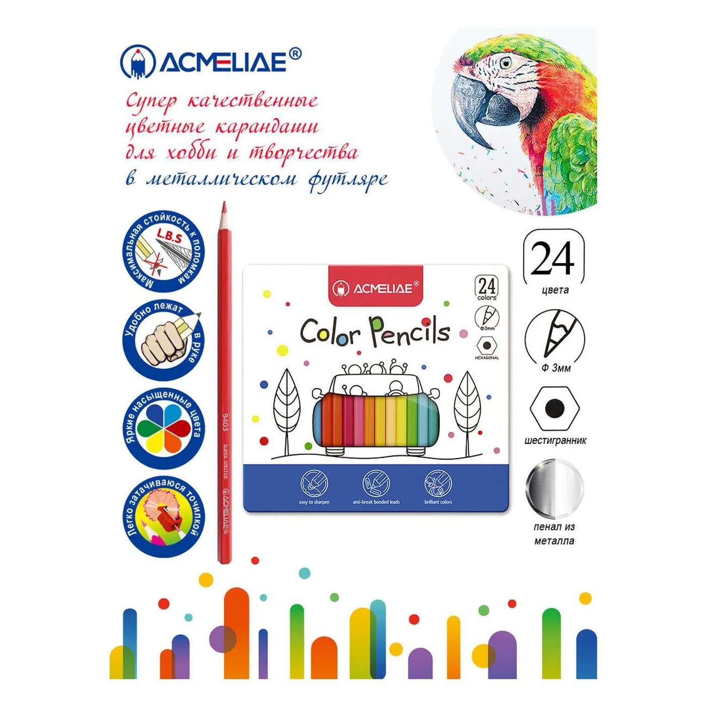 Набор карандашей цветных Acmeliae 24 цв в металлическом футляре (9800-24)