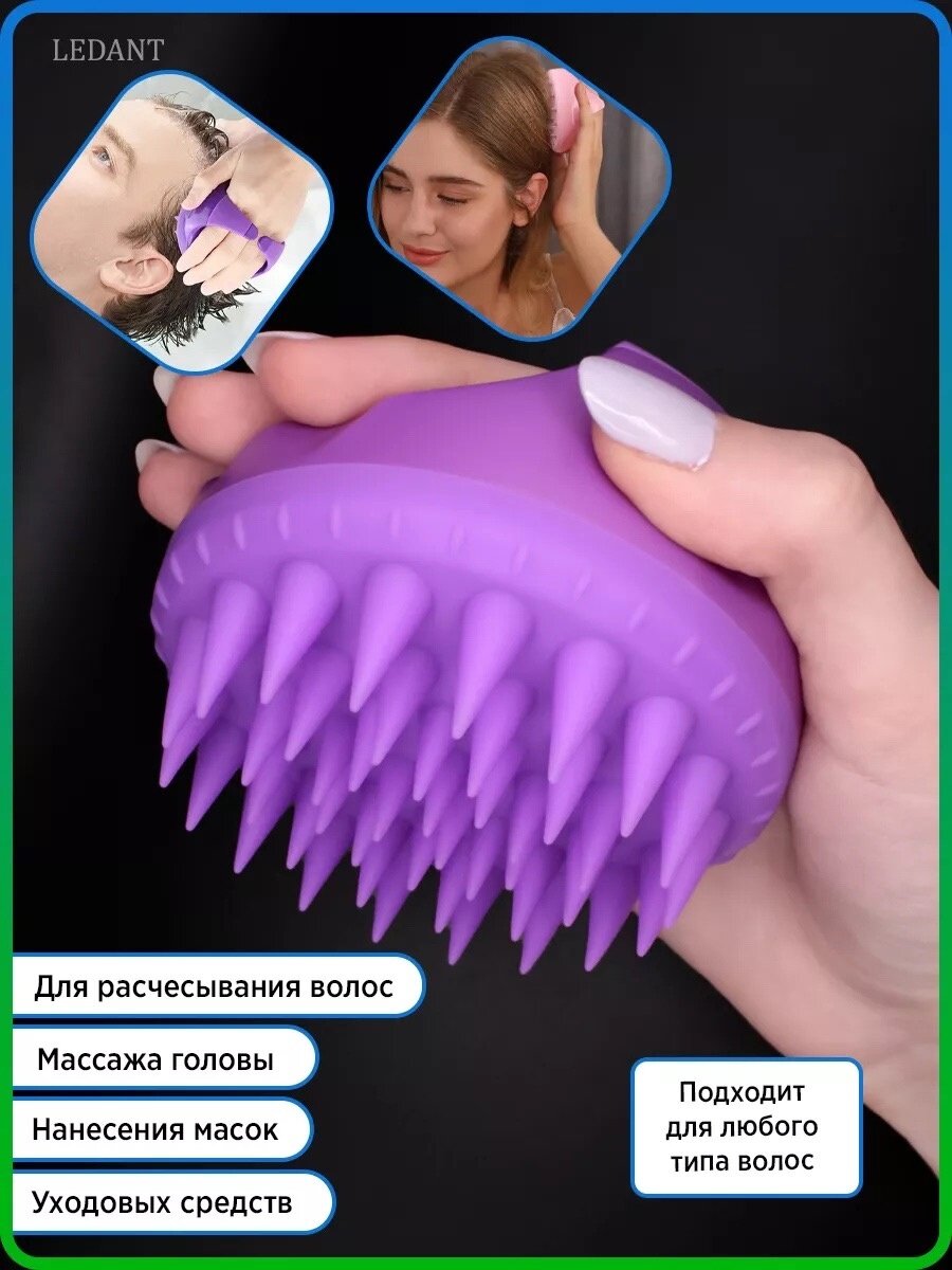 Щётка-массажёр бережно очистит кожу головы, улучшит кровообращение. Сверхмягкие и удлинённые щетинки из силикона отлично подойдут для очищения самой чувствительной кожи головы от перхоти.