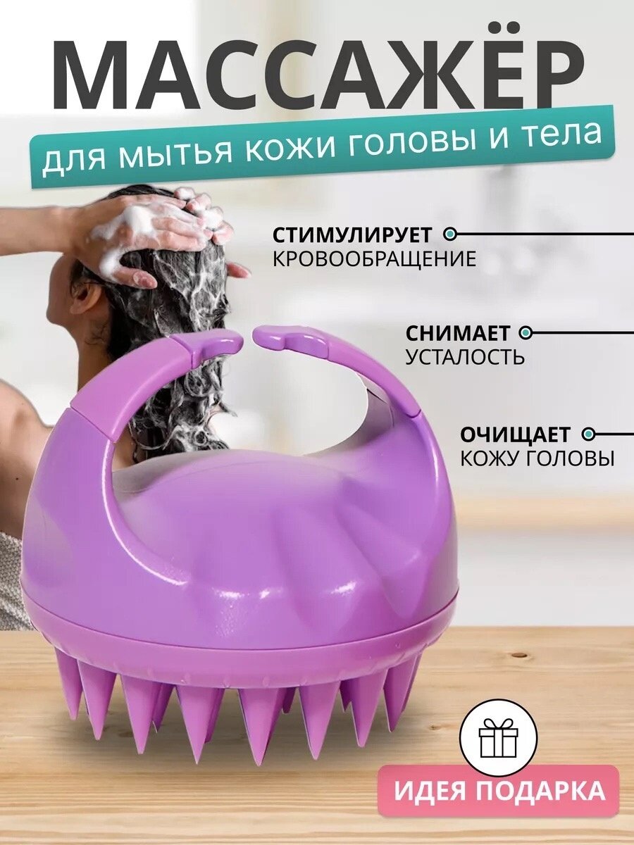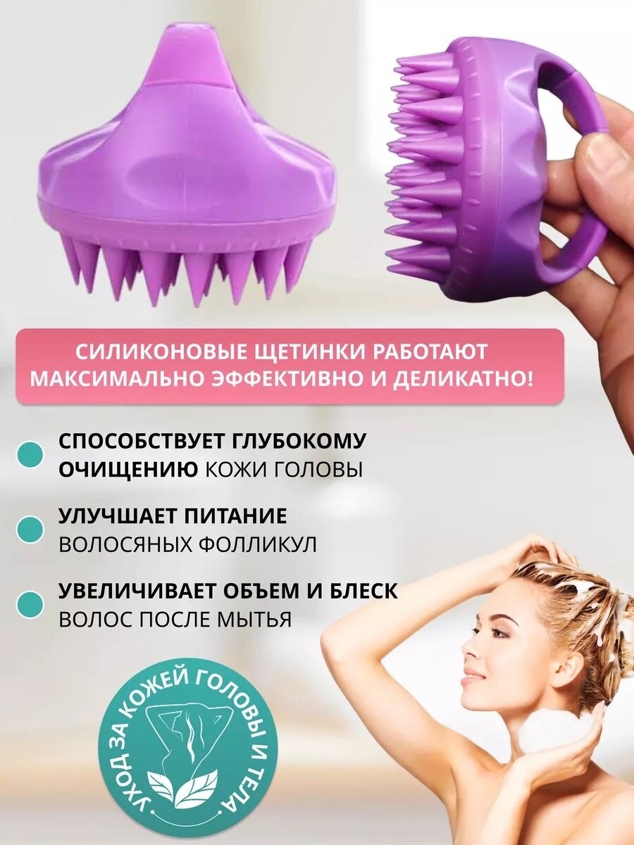 Массажная щетка для мытья головы не тянет волосы и подходит для густых и вьющихся волос, позволяет совместить процедуру мытья волос с расслабляющим массажем. Мягкая щетина помогает распутать локоны, равномерно распределить шампунь,