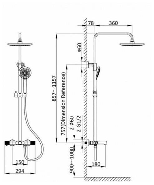 | ВКоробке | Душевая стойка - 1 шт. Верхний душ - 1 шт. Лейка - 1 шт. Шланг - 1 шт. Термостат - 1 шт. Инструкция - 1 шт. |