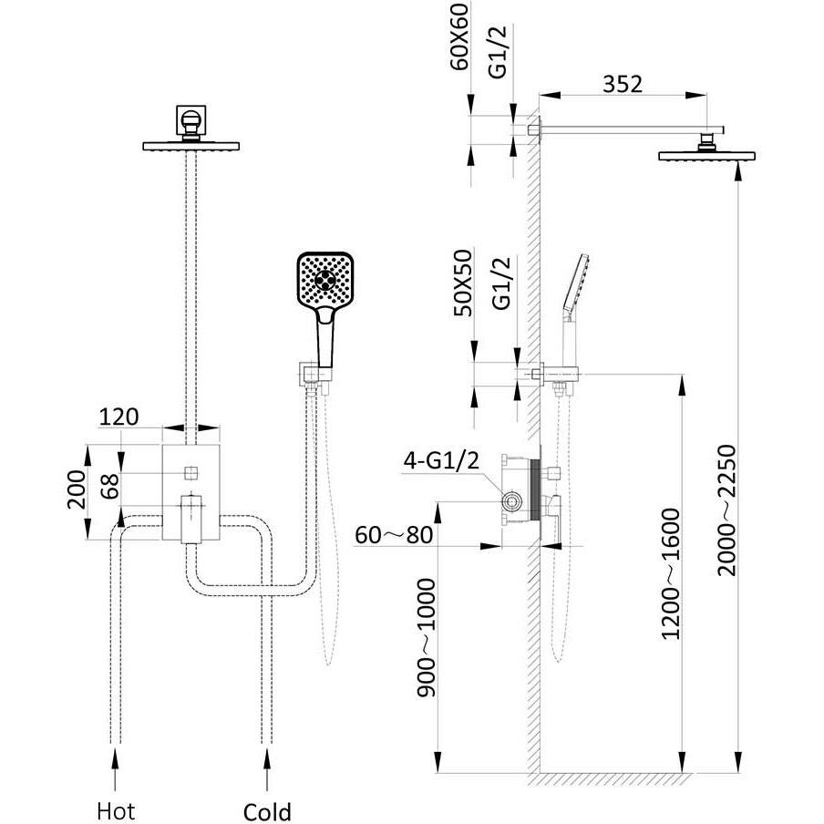 | ВКоробке | Верхний душ - 1 шт. Лейка - 1 шт. Шланг - 1 шт. Шланговое подключение с держателем для душа - 1 шт. Смеситель - 1 шт. Внутренняя монтажная часть - 1 шт. Инструкция - 1 шт. |