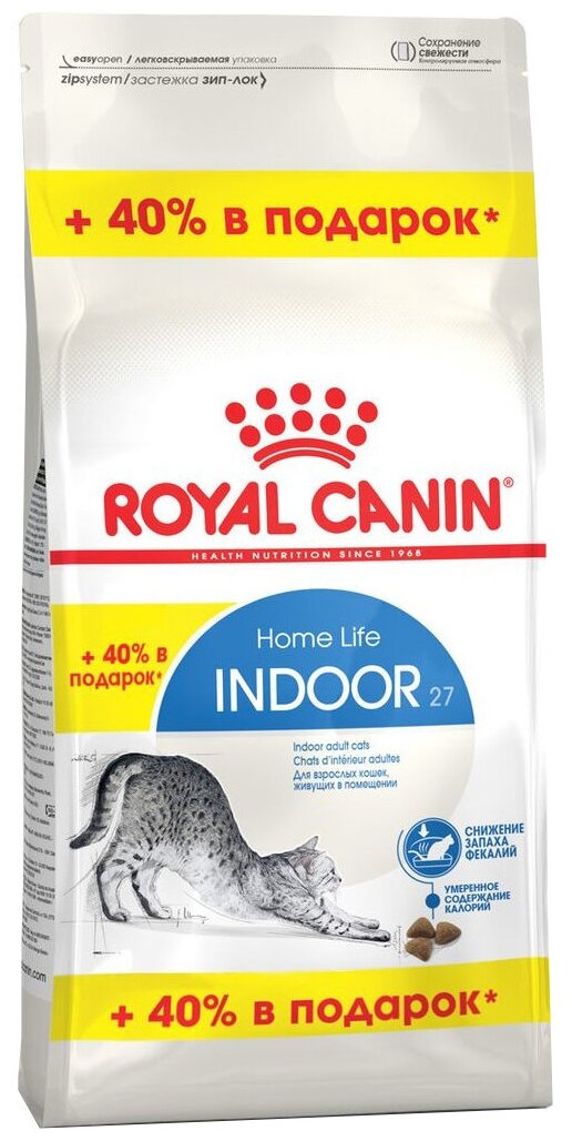 ROYAL CANIN® Indoor 27 содержит белки высокой усвояемости (L.I.P.), уменьшающие объем и неприятный запах стула (последнее особенно актуально для малоактивных кошек в связи с замедленным кишечным транзитом).
