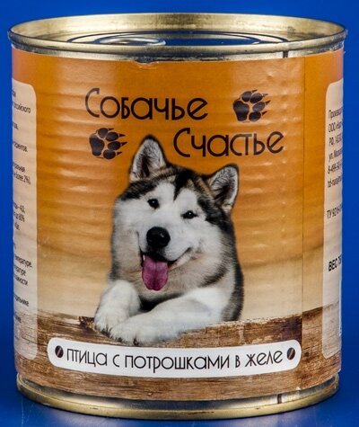 Собачье счастье консервы для собак (кусочки в желе) (Птица и потрошки 750 г.)