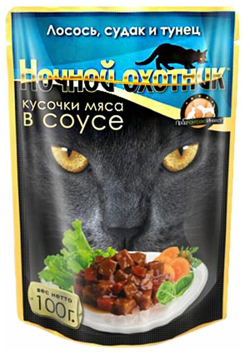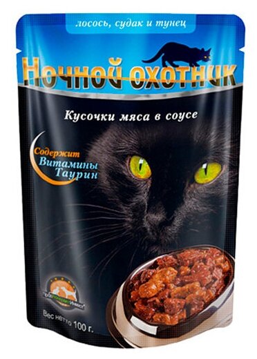 Ночной охотник пауч для кошек (кусочки в соусе) (Морское ассорти 100 г.)
