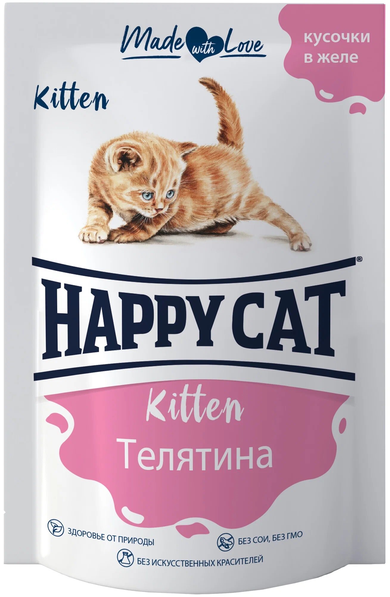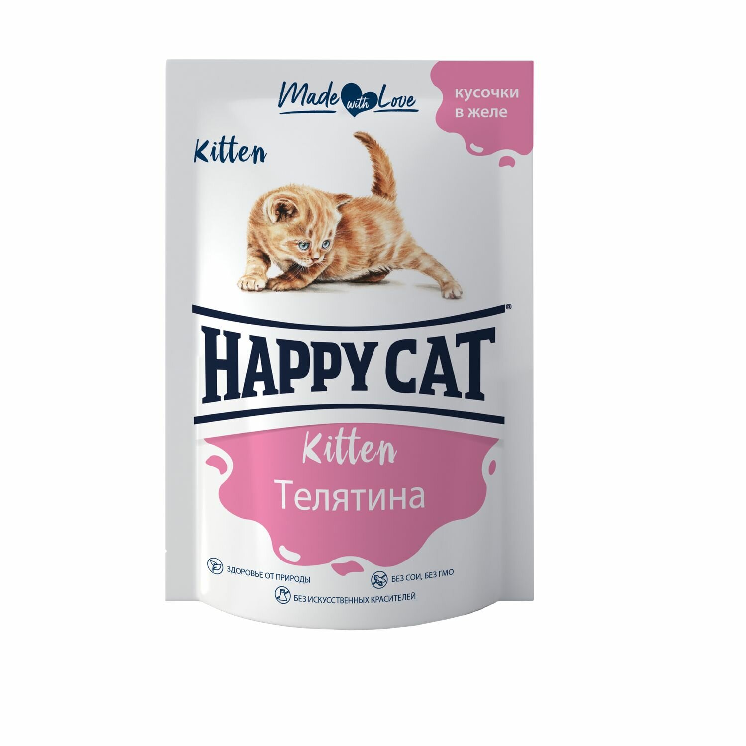 Happy Cat пауч для котят (кусочки в желе) (Телятина 100 г.)