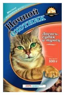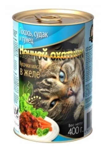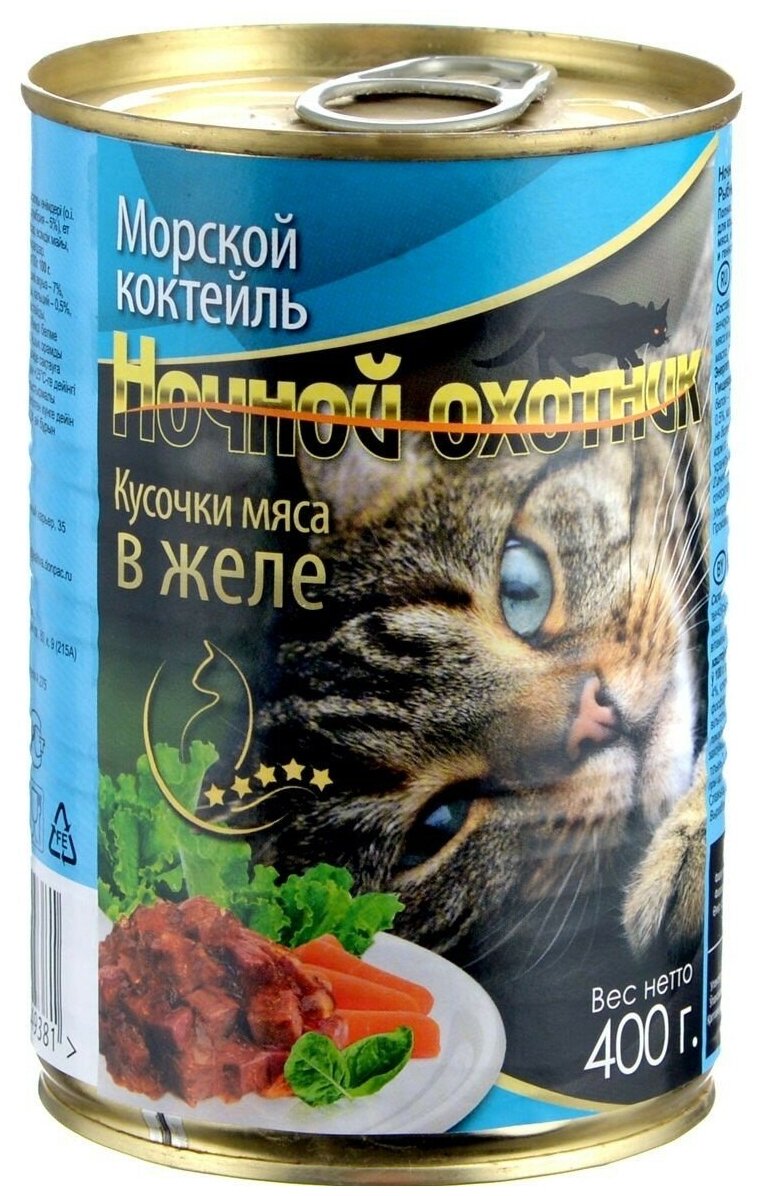 Ночной охотник консервы для кошек (кусочки в желе) (Морское ассорти 415 г.)