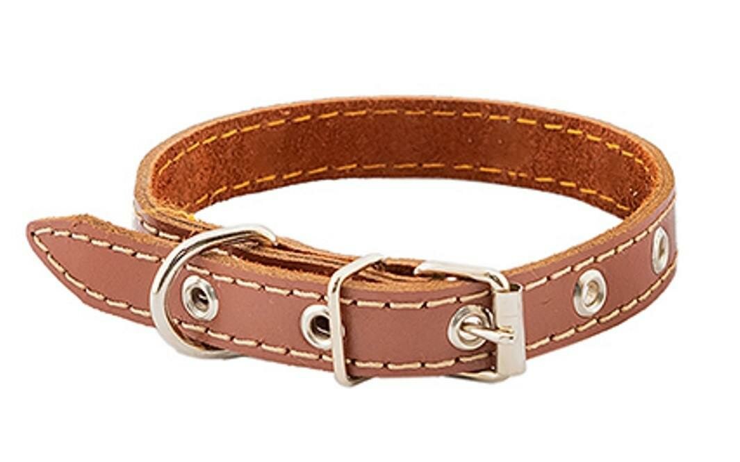 HOMEPET ошейник для собак кожаный простой простроченный (32-42 см. Черный)