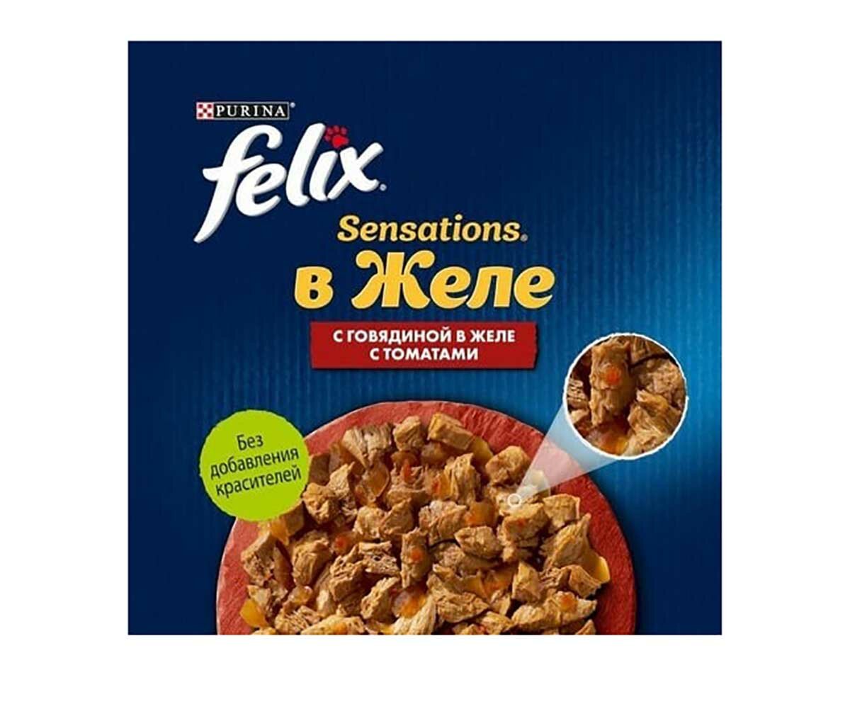 Felix Sensations пауч для кошек (кусочки в желе) (Говядина и томат 75 г.)