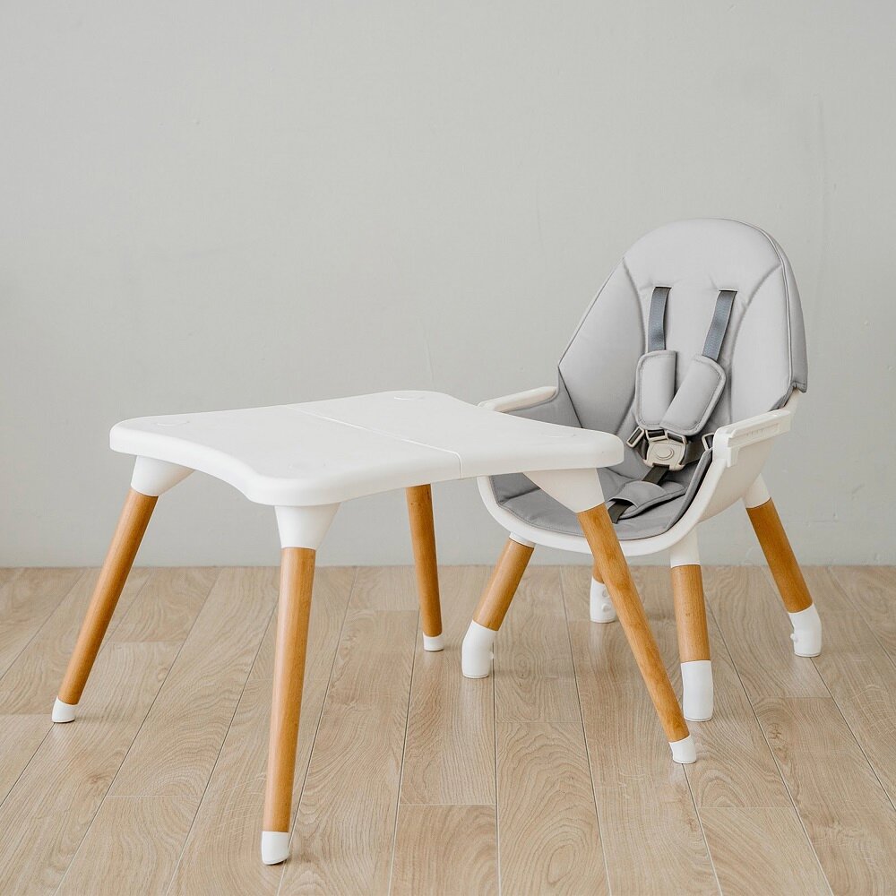 Для кормления полугодовалых малышей стул устанавливается сверху стола, тем самым получается классический высокий стул для кормления. Такая многофункциональность изделия позволяет родителям сэкономить на покупке разной детской мебели.