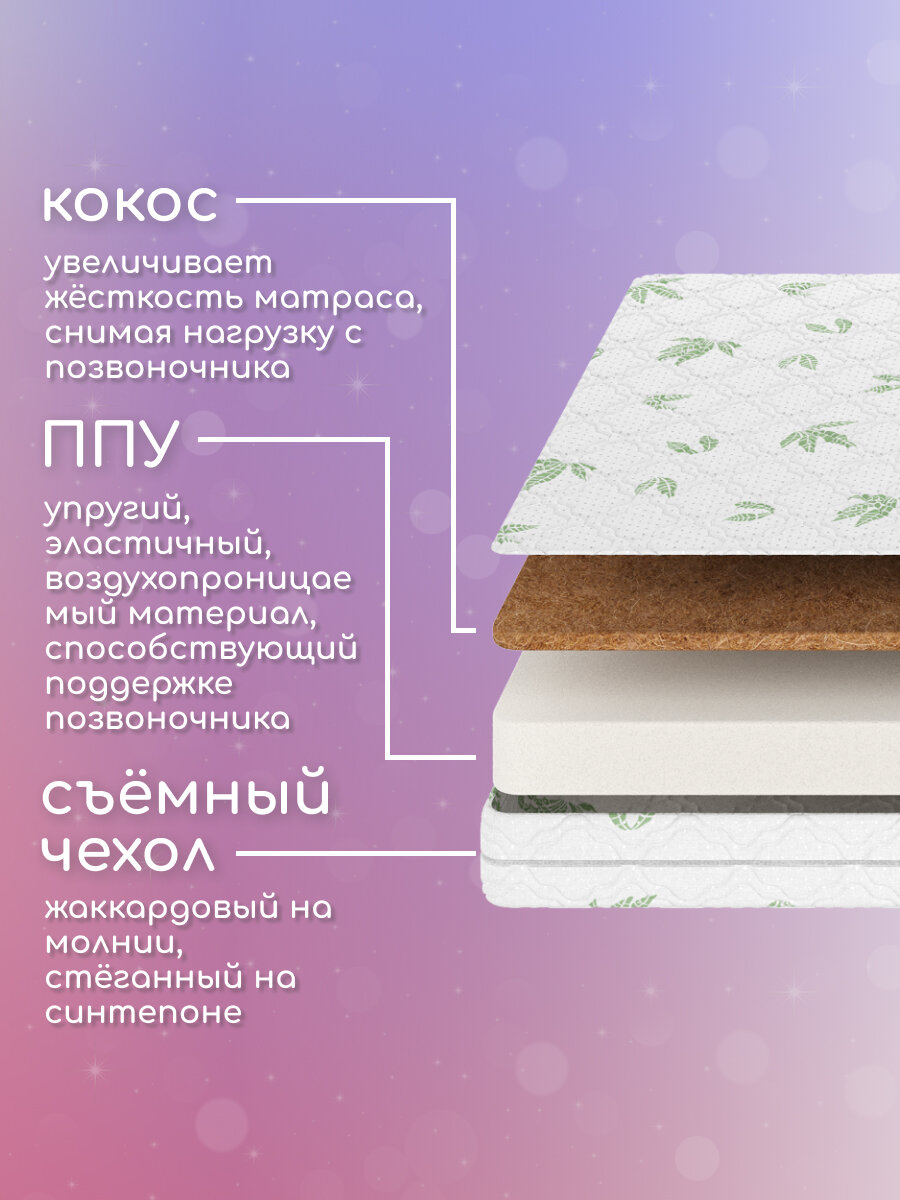 Материал: ППУ (8 см), спанбонд в обёртке, кокос 1 см