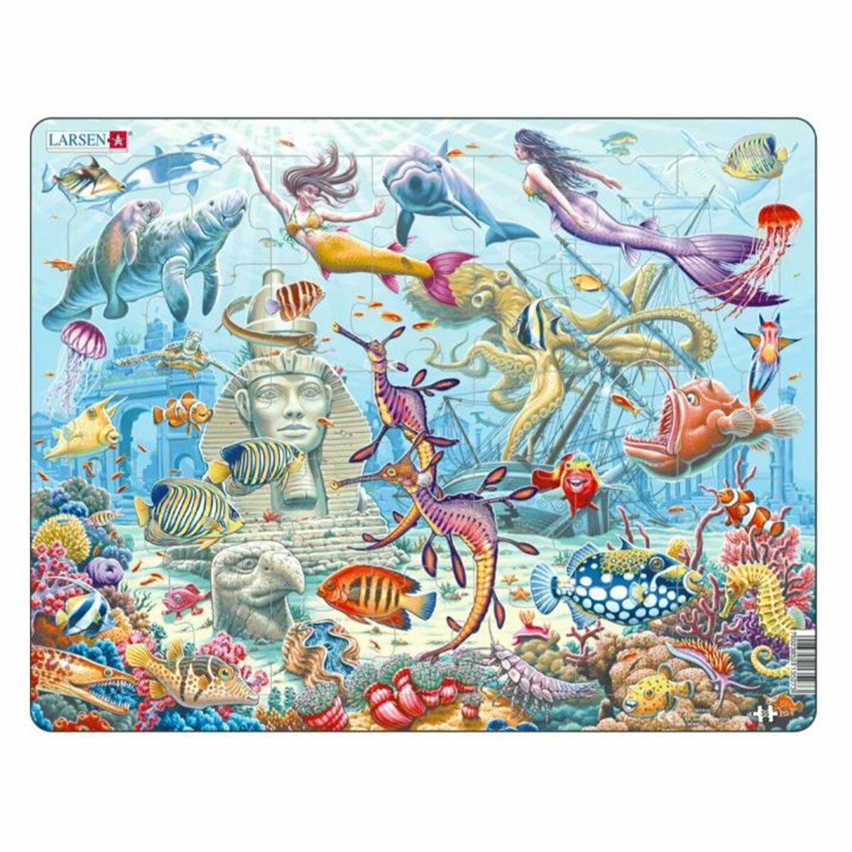 Пазл состоит из 35 деталей классической формы. Он стимулирует воображение и пробуждает интерес к тому, что скрывается под поверхностью моря.