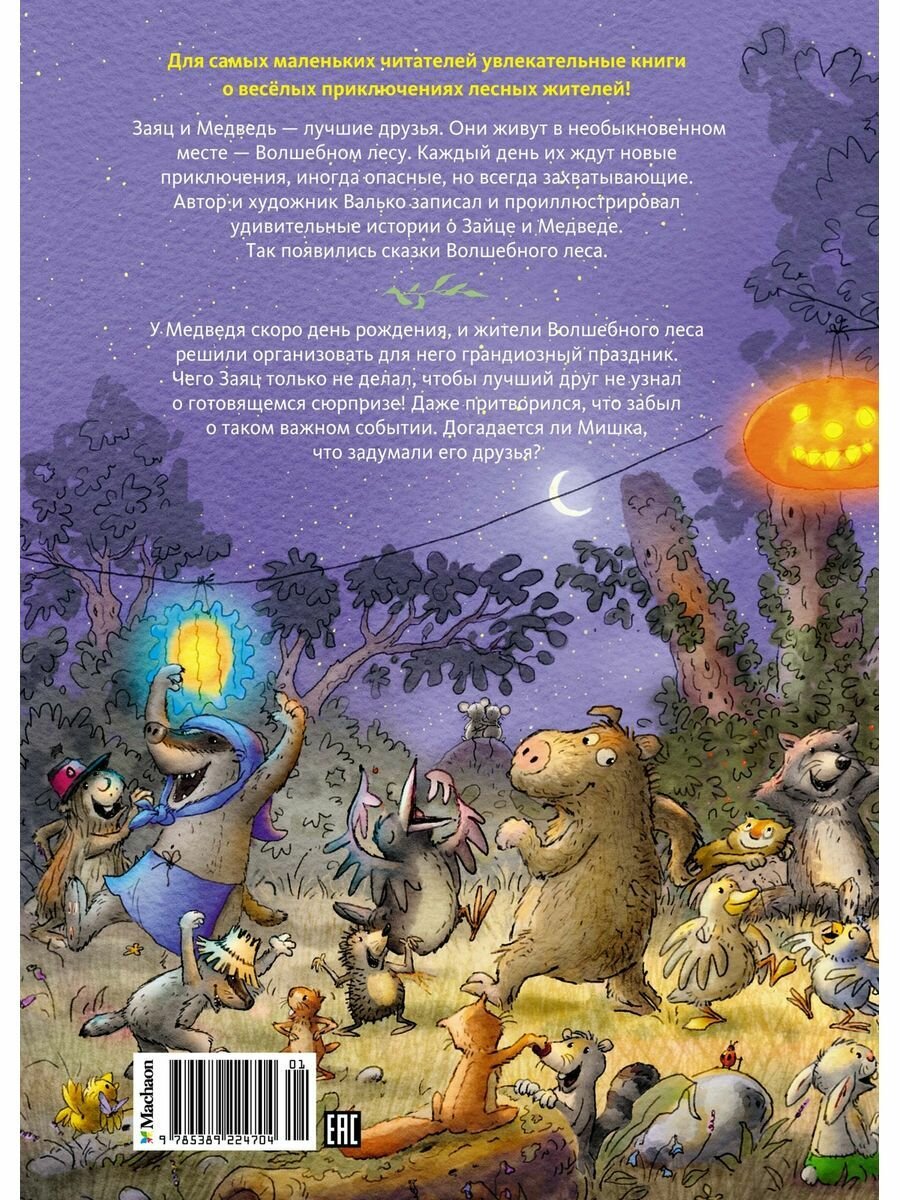 У Медведя скоро день рождения, и жители Волшебного леса решили организовать для него грандиозный праздник. Чего Заяц только не делал, чтобы лучший друг не узнал о готовящемся сюрпризе! Даже притворился, что забыл о таком важном событии. Догадается ли Мишка, что задумали его друзья?