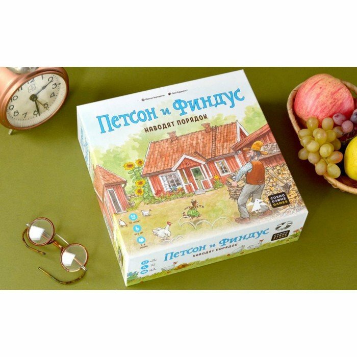 Игра хорошая, мы поклонники Свена Нурдквиста, поэтому эта игра однозначно должна у нас быть. Но есть вопросы к создателям игры. Надо искать коров, кур, мюклей, подсолнухи и эти карточки повторяются. Можно например было ещё искать яйца, поделки Петсона, кухонные приборы, одежду Петсона.
