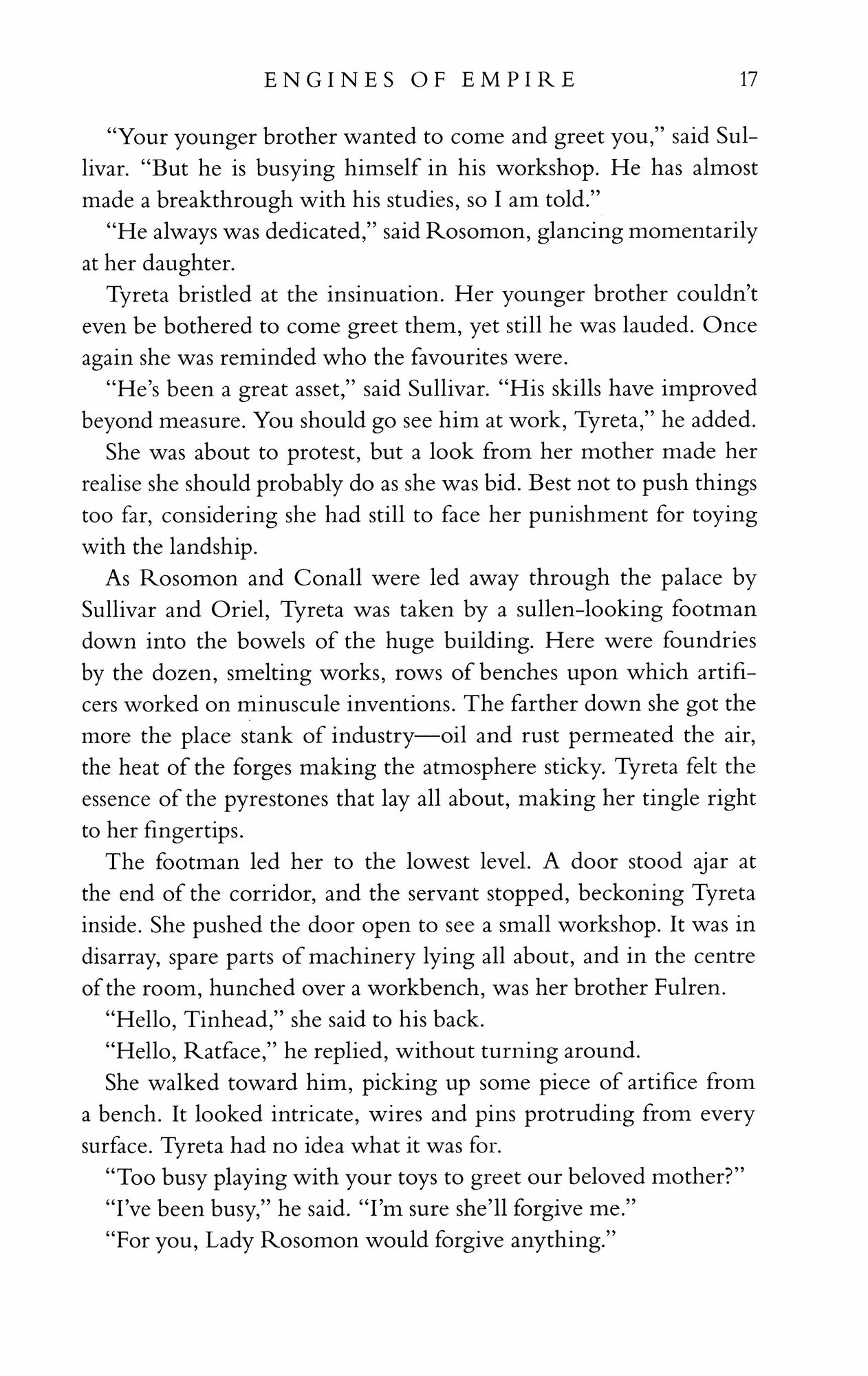 Tyreta is a sorceress with the ability to channel the power of pyrestone, the magical resource that fuels the empire's machines. She is sent to the mines to learn more about how pyrsetone is harvested - but instead, she finds the dark horrors of industry that the empire would prefer to keep hidden.