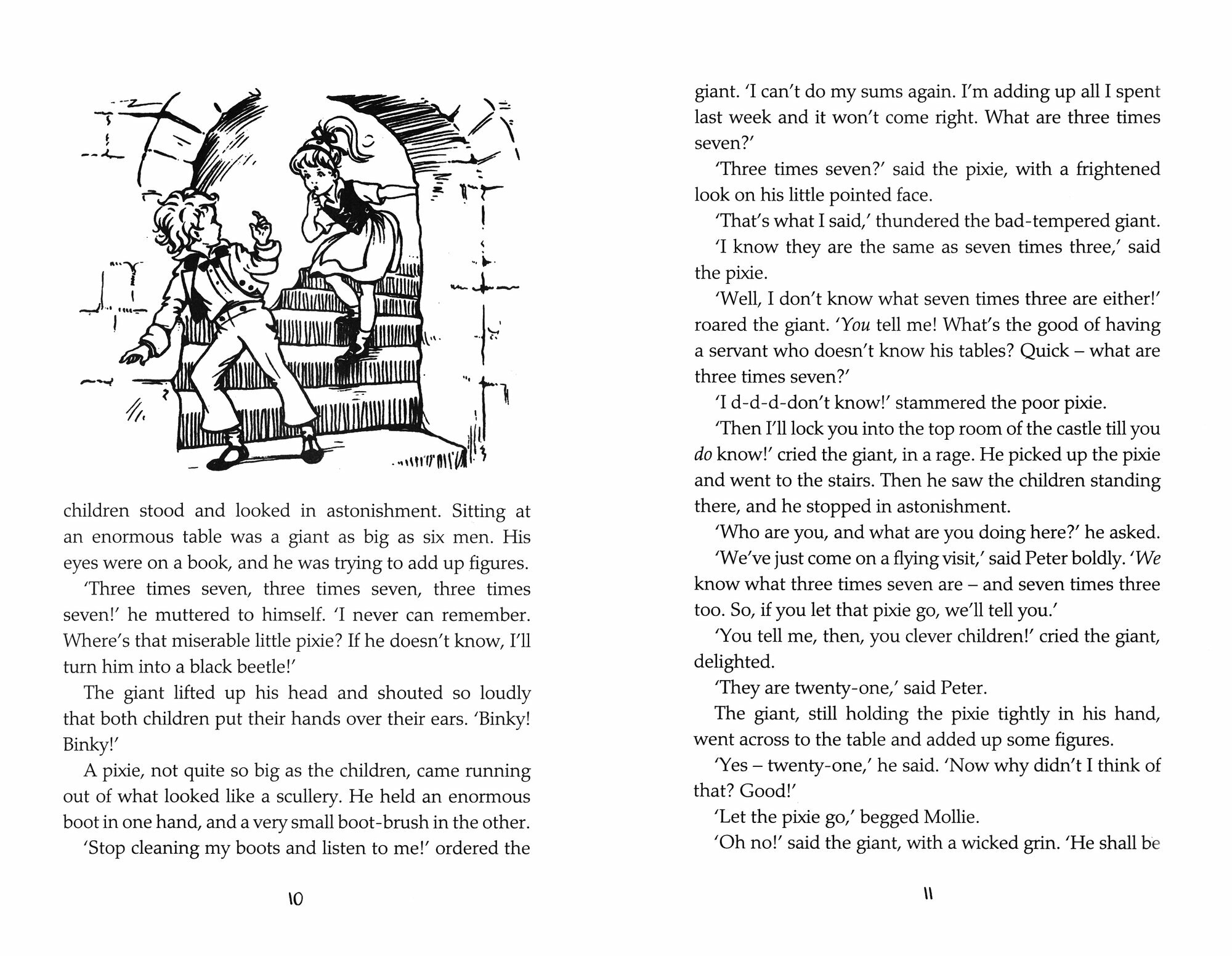 When Mollie and Peter go to buy their mother a birthday present, they discover the most extraordinary thing: a magical wishing-chair! The Wishing-Chair takes them on some wonderful adventures – to a giant’s castle to rescue a new pixie friend, to the Land of Dreams, and even to a disappearing island! Who knows what might happen next?