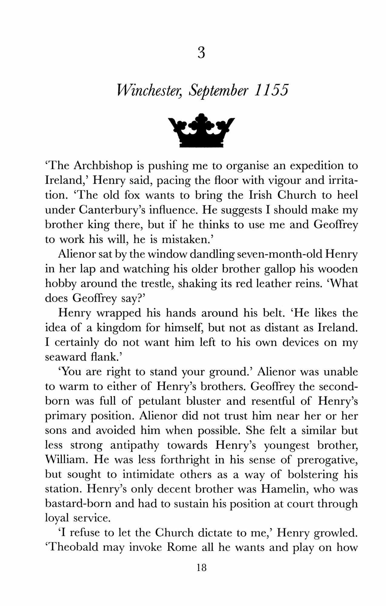 Eleanor of Aquitaine, one of the most powerful women in Europe, is crowned queen of England beside her young husband Henry II. While Henry battles their enemies and lays his plans, Eleanor is an adept acting ruler and mother to their growing brood of children. But she yearns for more than this - if only Henry would listen.