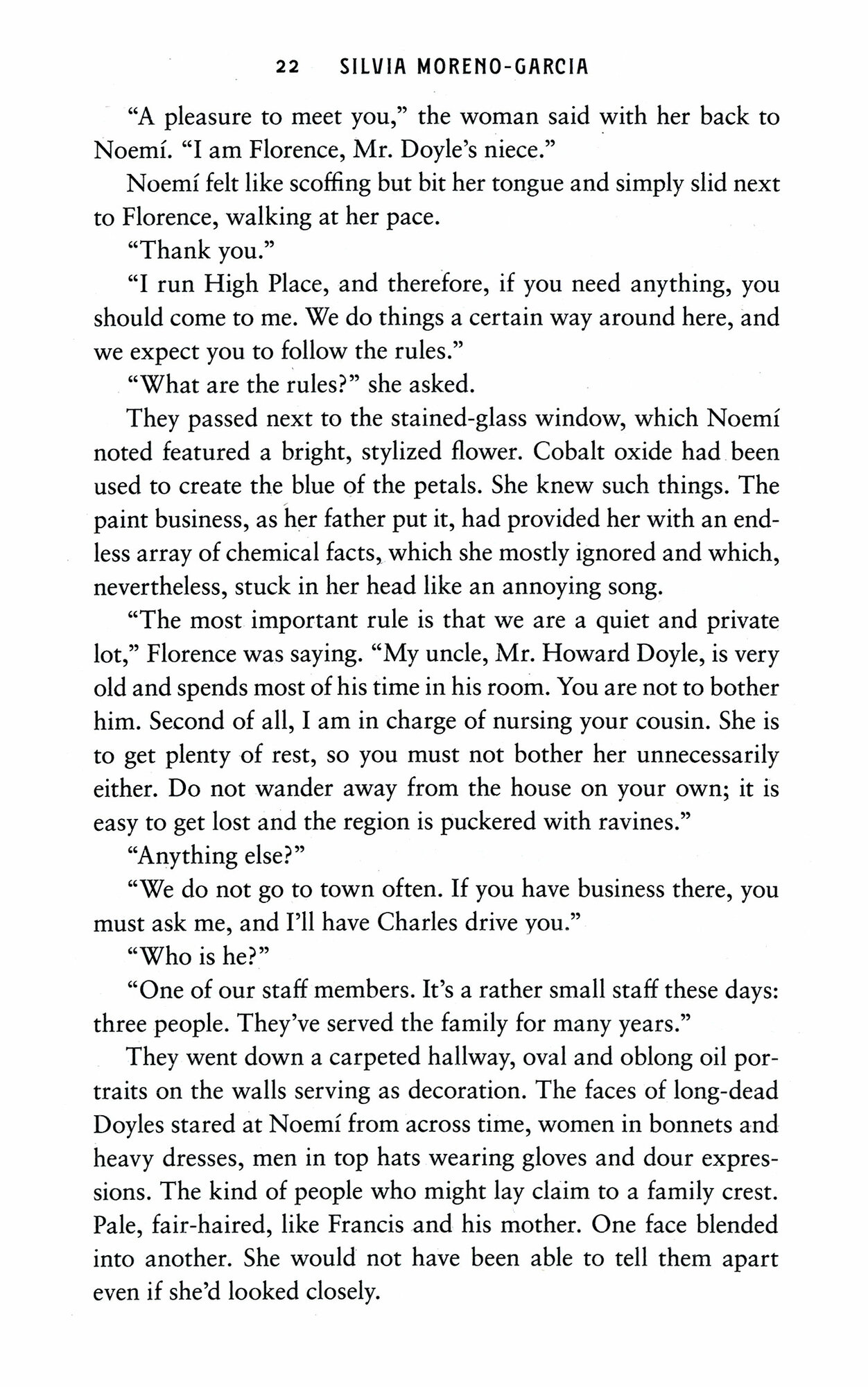 Tough and smart, she possesses an indomitable will, and she is not afraid: not of her cousin's new husband, who is both menacing and alluring; not of his father, the ancient patriarch who seems to be fascinated by Noemi; and not of the house itself, which begins to invade Noemi's dreams with visions of blood and doom.