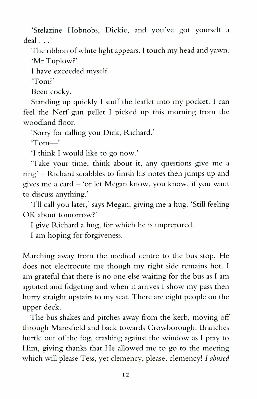 Funny, smart, damaged, Tom is lost in the machinery of the British mental health system, talking to a voice no one else can hear; the voice of Malamock, the Octopus God - sometimes loving, sometimes cruel, but always there to fill his life with meaning. Once an outstanding law student, Tom is now cared for by his long-suffering sister Tess, who encourages him into an experimental drugs trial that promises to silence the voice forever. The Octopus God, however, does not take kindly to being threatened...