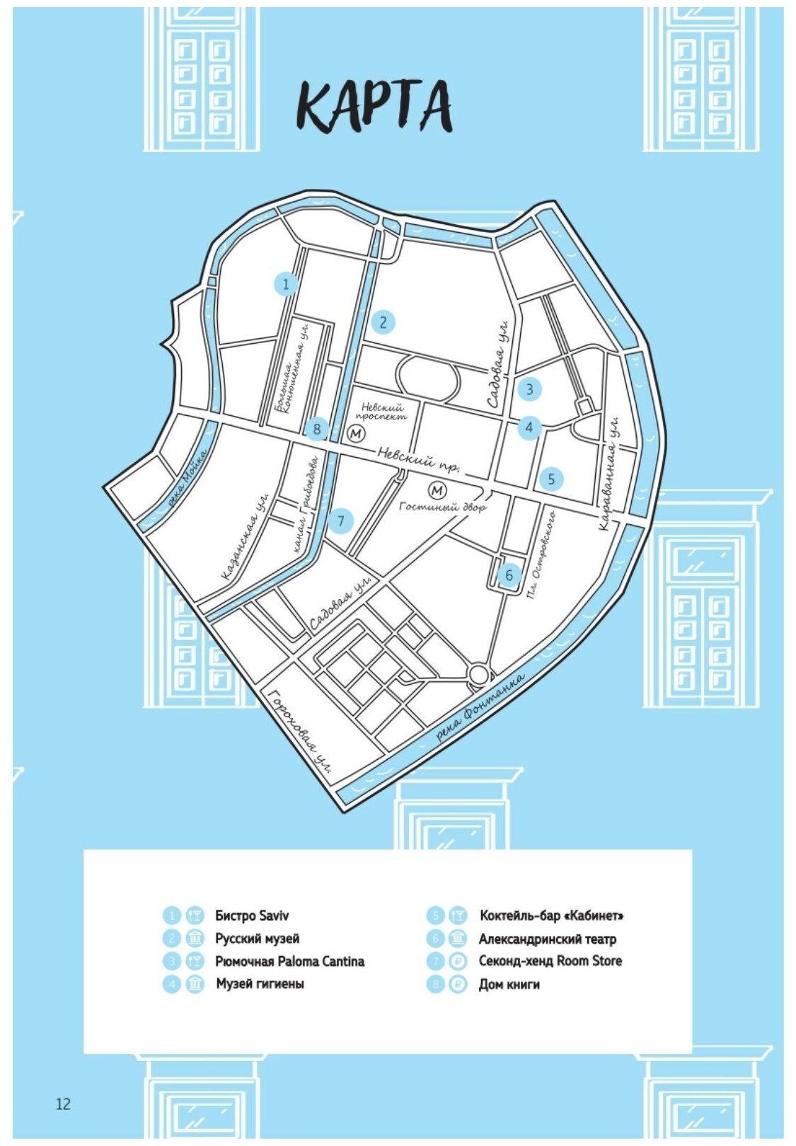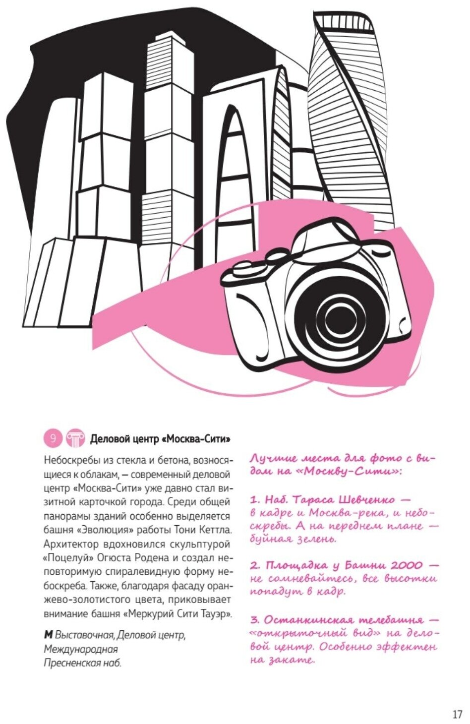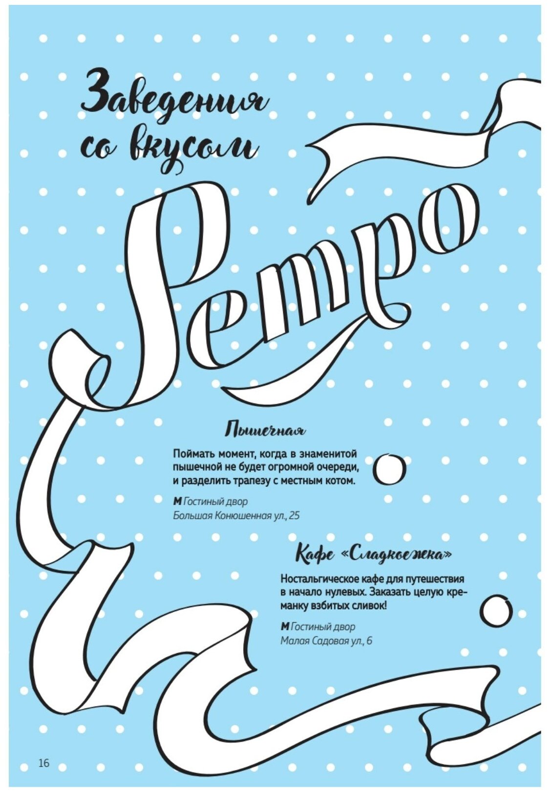 Такая книга - идеальный вариант для продуманного путешествия по Москве и Санкт-Петербургу. Лично я всегда очень тщательно готовлюсь к путешествиям, хочется посмотреть и успеть как можно больше, простроить логические маршруты, чтобы потратить как можно меньше времени на дорогу. Такие маленькие, но удаленькие путеводители - идеальные помощники. Сама я всю жизнь живу в Петербурге и поэтому сразу повернула книгу стороной с Москвой. Да, книга начинается с обеих сторон, но с одной стороны - Питер, а с другой - Москва. Книга разделена пополам и разграничена цветами: розовые странички у Москвы, а голубые - у Питера. Так вот, я начала читать сторону Москвы, потому что, стыдно признаться, совсем не знаю этот город, однако, неуклюже выронив книгу, она открылась на "Питерской стороне" и оказалось, что тут я тоже чего-то не знаю. Книгой можно пользоваться с учетом того, что вы ищите: музеи и театры, "спрятанные" диковинки, улочки, сады, на которые можно только случайно наткнуться в городе, магазины для шопинга, архитектурные постройки или рестораны, касаемо еды, здесь упомянуты даже не популярные, но стоящие места. А если вы устали от города, пригороды наших столиц так же особенны и интересны. Везде сразу помечены адреса, а где-то так же расположится история места или названия, тоже как процесс окультуривания. Единственный минус книги - это действительно сложно читабельный шрифт и изобилие ярких пятен. Лично я буду изучать эту книгу перед путешествием, намечая свой личный маршрут. Яркий дизайн страниц может отвлекать и путать вас во время путешествия, а хотелось бы, чтобы ваши глаза в этот момент внимали только красоты нового для вас города или города "по-новому".