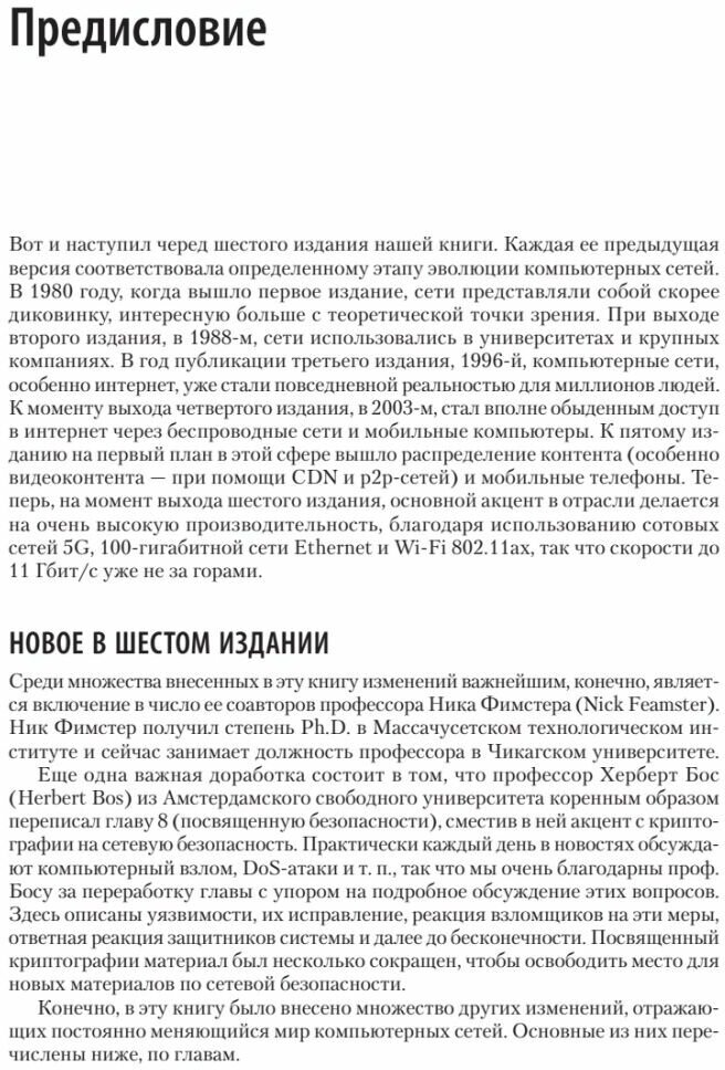 Шестое издание полностью переработано с учетом изменений, произошедших в сфере сетевых технологий за последние годы, и, в частности, освещает такие технологии, как DOCSIS, 4G и 5G, беспроводные сети стандарта 802.11ax, 100-гигабитные сети Ethernet, интернет вещей, современные транспортные протоколы CUBIC TCP, QUIC и BBR, программно-конфигурируемые сети и многое другое.