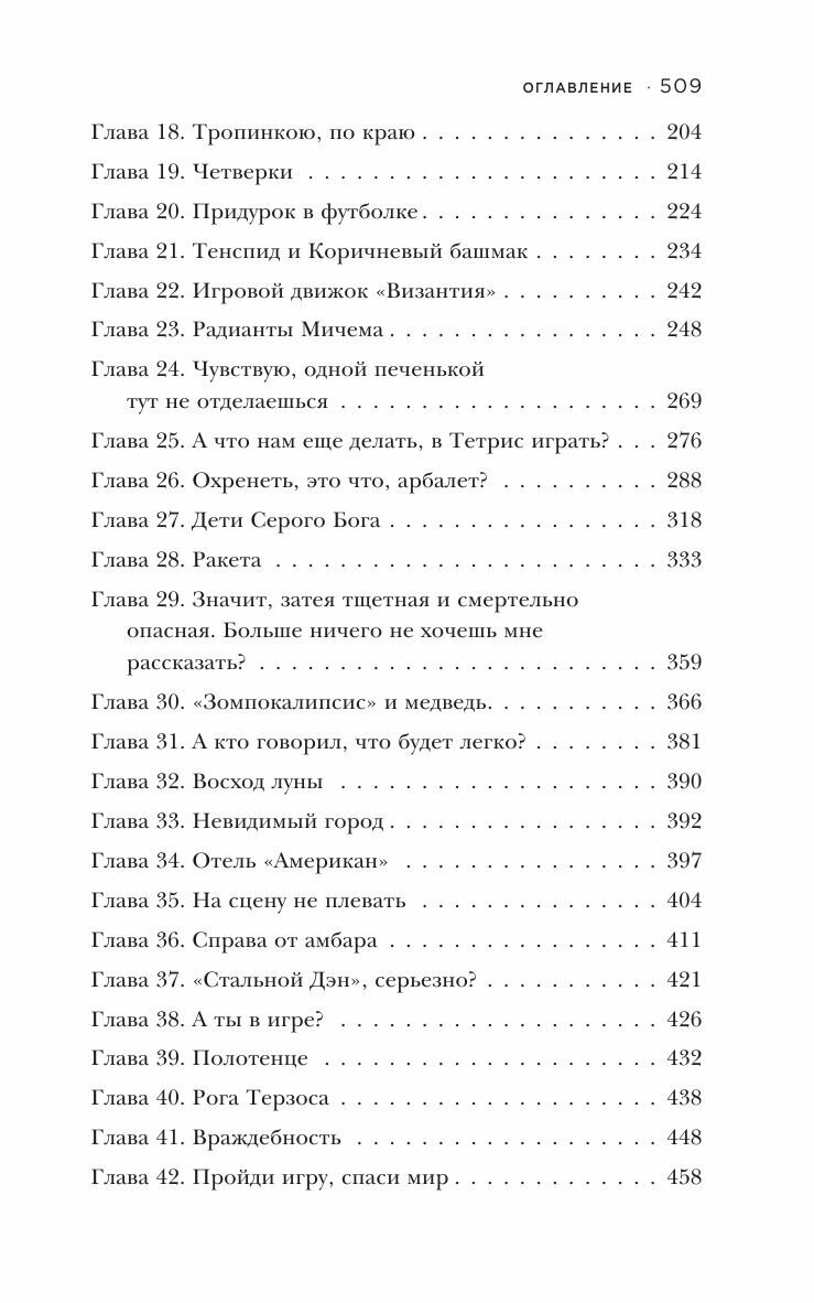 Много видели подобных сюжетов, а в данной книге ещё и сюжет растянут. Главные герои постоянно ищут странности, этим страницы и заполнены. Если выкинуть эти \"типо загадки\", то сюжета на страниц сто всего. Много забавных отсылок на видеоигры и книги. Читается легко, но какой же простой сюжет)