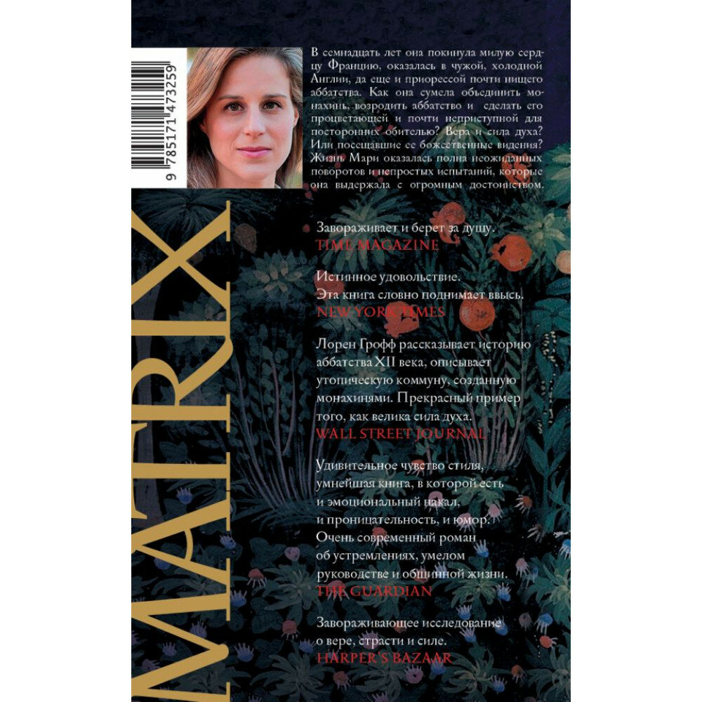 Лорен Грофф мастерски сплетает в этой книге духовное и телесное, рисует переменчивость людских сердец, захваченных жестокостью, чувственностью или религиозным экстазом. Перед читателем предстает портрет яркой, волевой женщины, обуреваемой страстями – будь то любовь, власть или вера.