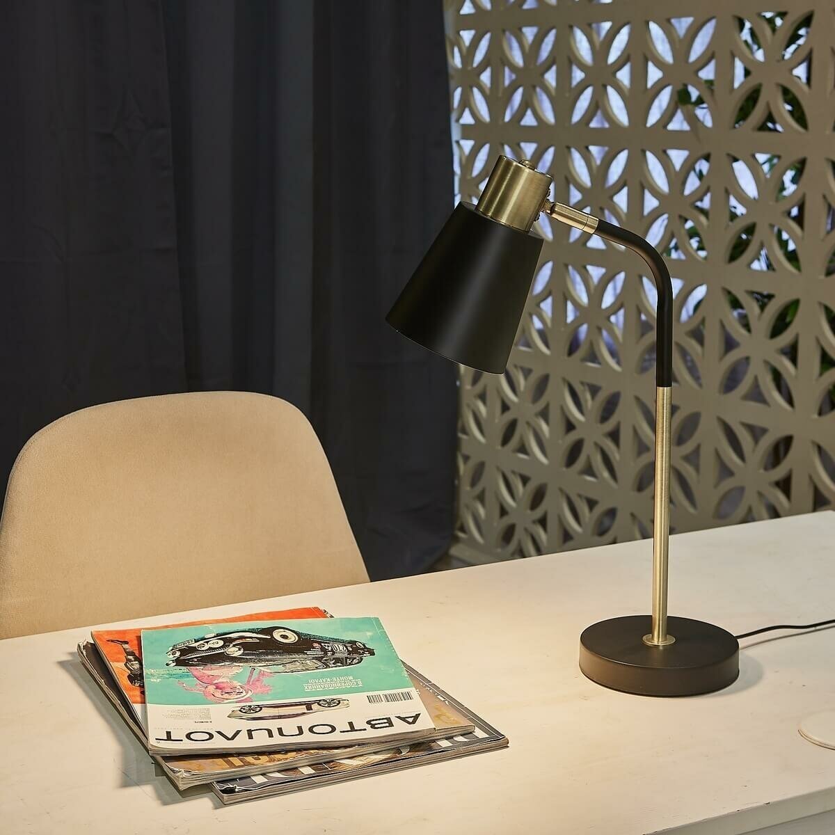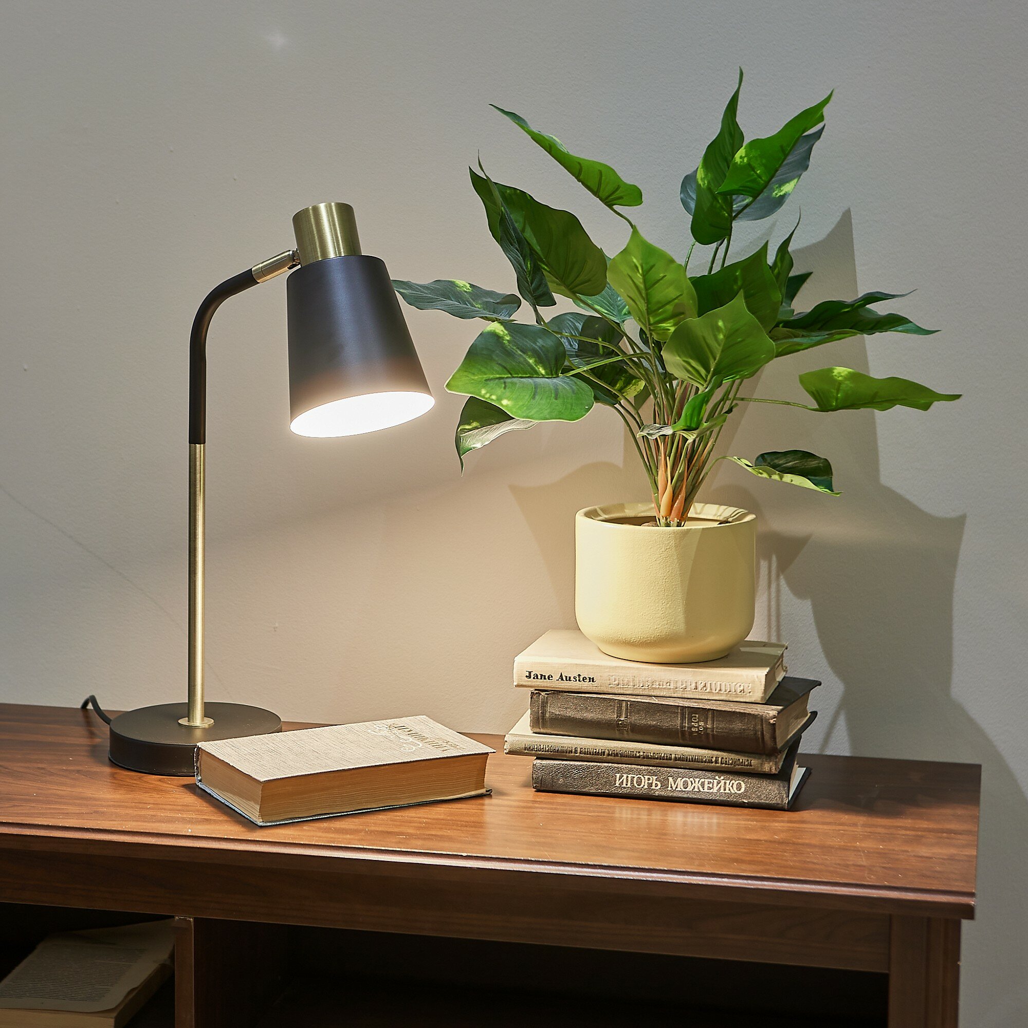 Светильник настольный служит для освещения рабочего места дома и в офисе. Стильный дизайн украсит интерьер, оформленный в любом стиле. Качественный металлический корпус, регулируемая стойка позволяет менять высоту плафона в широком диапазоне. Источником света служит лампочка ( в комплект не входит, покупается отдельно) мощностью не более 60 Вт. Для наименьшего нагрева плафона настольной лампы рекомендуется использовать светодиодные лампочки. Длина провода 1,5 метра. Высота стойки 50 см, диаметр подставки 15 см.