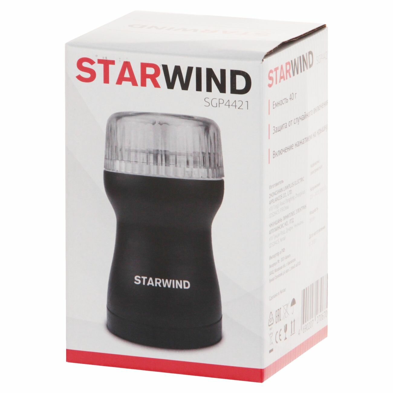 Кофемолка Starwind черный, мощность 200Вт, ротационный нож, вместимость 40г, материал корпуса пластик