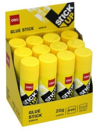 Клей-карандаш Deli Stick UP 20гр корп.желтый прозрачный дисплей картонный усиленный EA20210