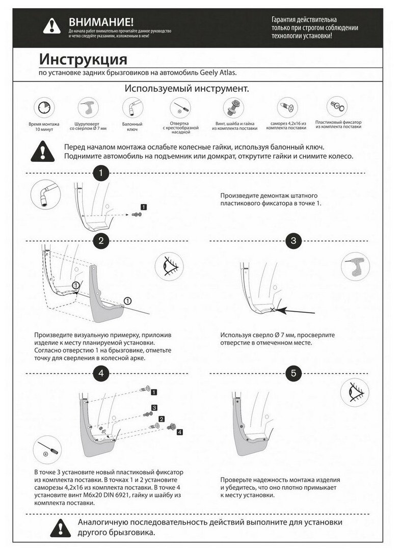 | Комплектация | 2 брызговика, крепеж, инструкция, упаковка |