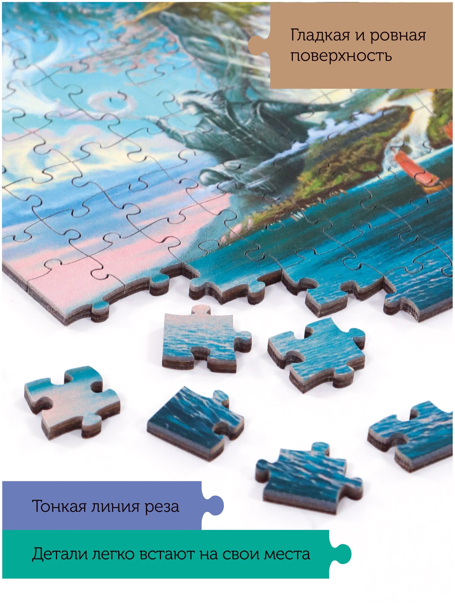 Если в процессе сборки правильно подобрать нужную деталь, она легко и без лишних усилий встает на свое место. Тонкие линии реза и классический контур деталей деревянного пазла визуально сохраняют целостность картины и не разбивают ее на отдельные кусочки. Благодаря этому можно сосредоточиться на самой картине, почувствовать ее энергию и цветовую гармонию, собрать ее из разных красок, мазков и оттенков в единое целое!