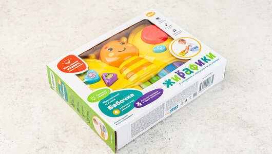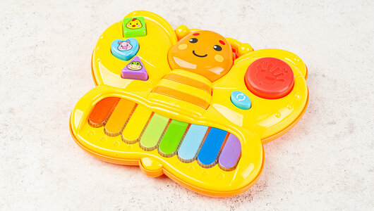 С этой милой музыкальной бабочкой можно устроить настоящий домашний концерт! Нажимая красочные кнопки с изображением цыплёнка, поросёнка и лягушонка, малыш послушает весёлые песенки и голоса животных. На игрушке имеется мини-барабанчик, который добавит забавных спецэффектов в каждый музыкальный концерт ребёнка! И, конечно же, кроха может поиграть на пианино, нажимая цветные клавиши. Совсем как настоящий музыкант!
