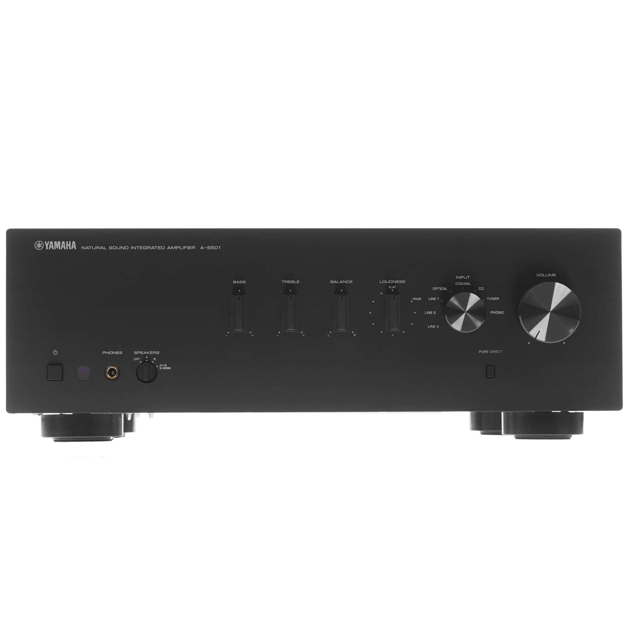 Yamaha A-S501, интегральный усилитель, выгодно отличающийся наличием цифровых входов. Впечатляющее качество звучания, обширный набор функций и элегантный внешний вид. Также имеется возможность подключения беспроводного Bluetooth-адаптера YBA-11 (не входит в комплект поставки).