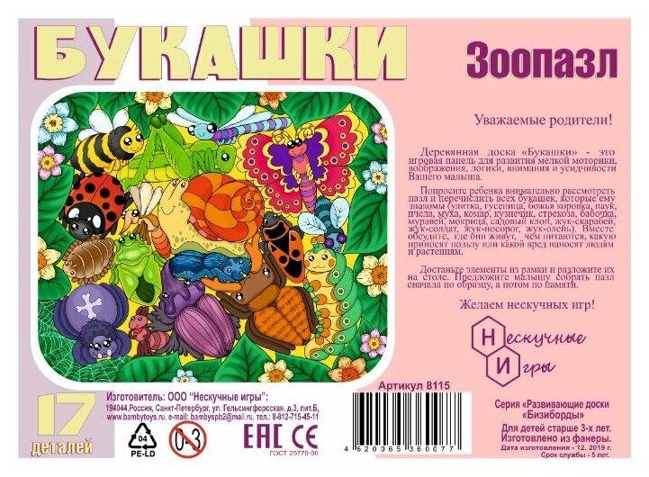 На сегодняшний день товар «Нескучные Игры Зоопазл Букашки (17 деталей)» можно купить с кешбеком в 1 магазине: Яндекс.Маркет