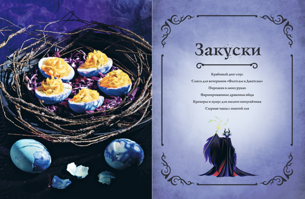 Вы, несомненно, оцените такие рецепты, как "Картофель на веретене", "Далматинские блины с клубничным компоте", "Ужасно полезный солнечный салат" и многие другие. Блюда, вдохновлённые культовыми злодеями от Малефисенты до Капитана Крюка, идеально подойдут для следующей вечеринки в честь Хеллоуина или просмотра фильмов Disney.